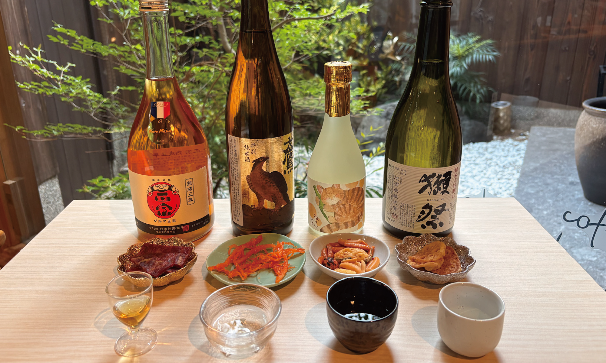Taste four carefully selected seasonal sakes paired with light snacks.